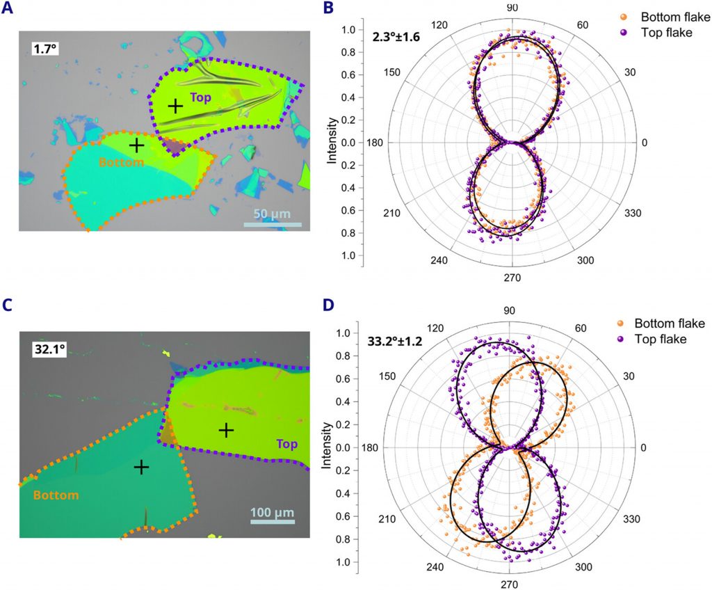 Abstract: Artificially engineered twisted van der Waals (vdW) heterostructures have unlocked new pathways for exploring emergent quantum phenomena and strongly correlated electronic states. Many of these phenomena are highly sensitive to the twist angle, which can be deliberately tuned to tailor the interlayer interactions. This makes the twist angle a critical tunable parameter, emphasizing the need for precise control and accurate characterization during device fabrication. In particular, twisted cuprate heterostructures based on Bi2Sr2CaCu2O8 + x (BSCCO) have demonstrated angle-dependent superconducting properties, positioning the twist angle as a key tunable parameter. However, the twisted interface is highly unstable under ambient conditions and vulnerable to damage from conventional characterization tools such as electron microscopy or scanning probe techniques. In this work, a fully non-invasive, polarization-resolved Raman spectroscopy approach is introduced for determining twist angles in artificially stacked BSCCO heterostructures. By analyzing twist-dependent anisotropic vibrational Raman modes, particularly utilizing the out-of-plane A1g vibrational mode of Bi/Sr at ≈116 cm−1, clear optical fingerprints of the rotational misalignment between cuprate layers are identified. The high-resolution confocal Raman setup, equipped with polarization control and RayShield filtering down to 10 cm−1, allows for reliable and reproducible measurements without compromising the material’s structural integrity.